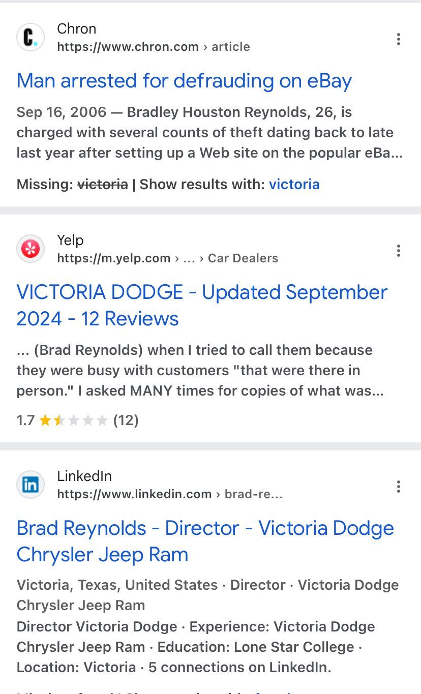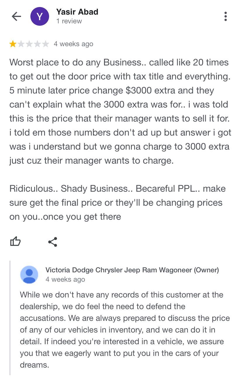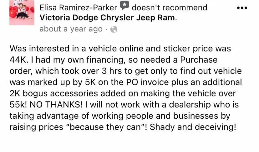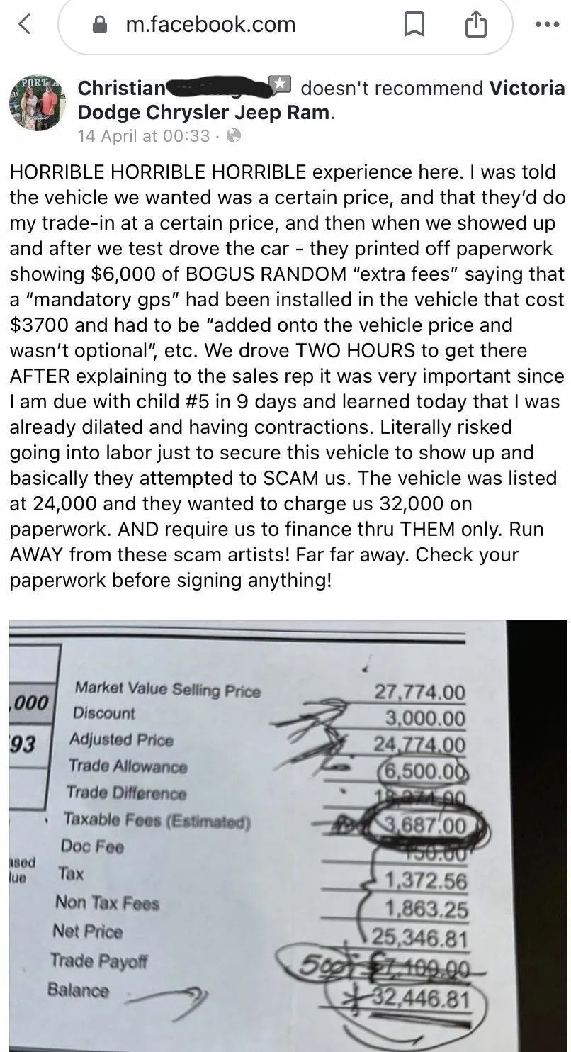 Commits 100 % Fraud in the Finance Department at Victoria Dodge Chrysler Jeep Ram Wagoneer In