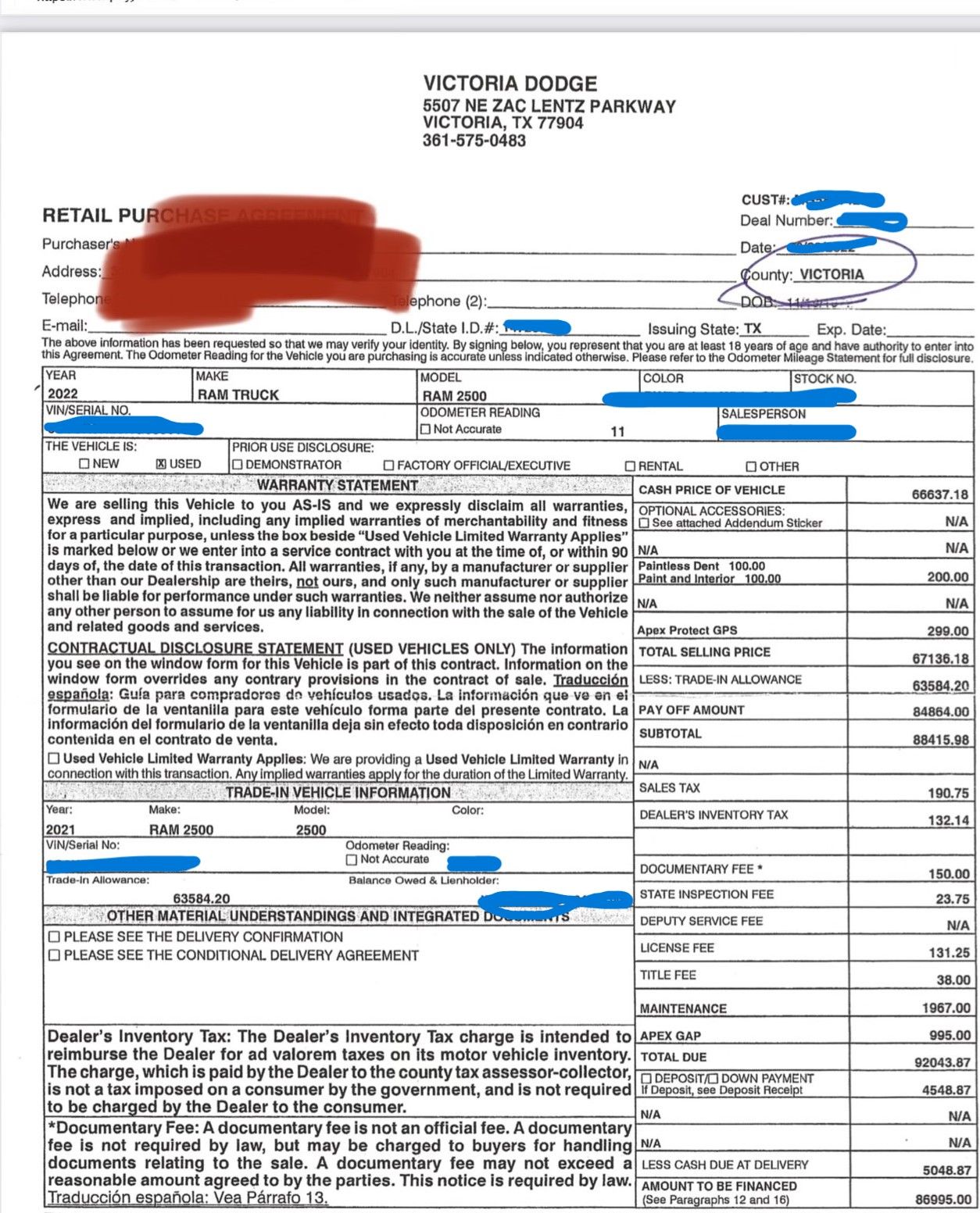 CHECK YOUR FINANCE CONTRACT AMOUNT FINANCED