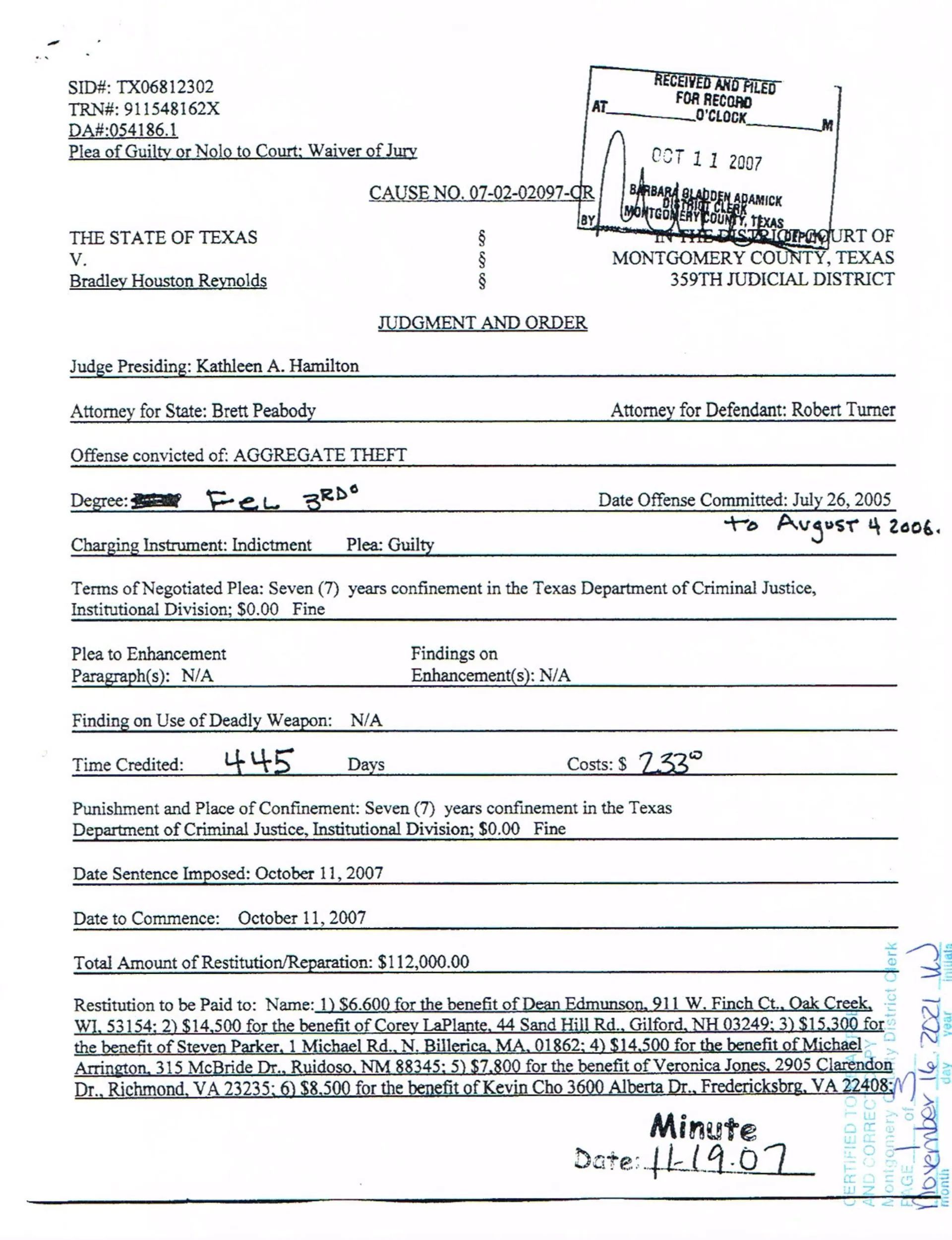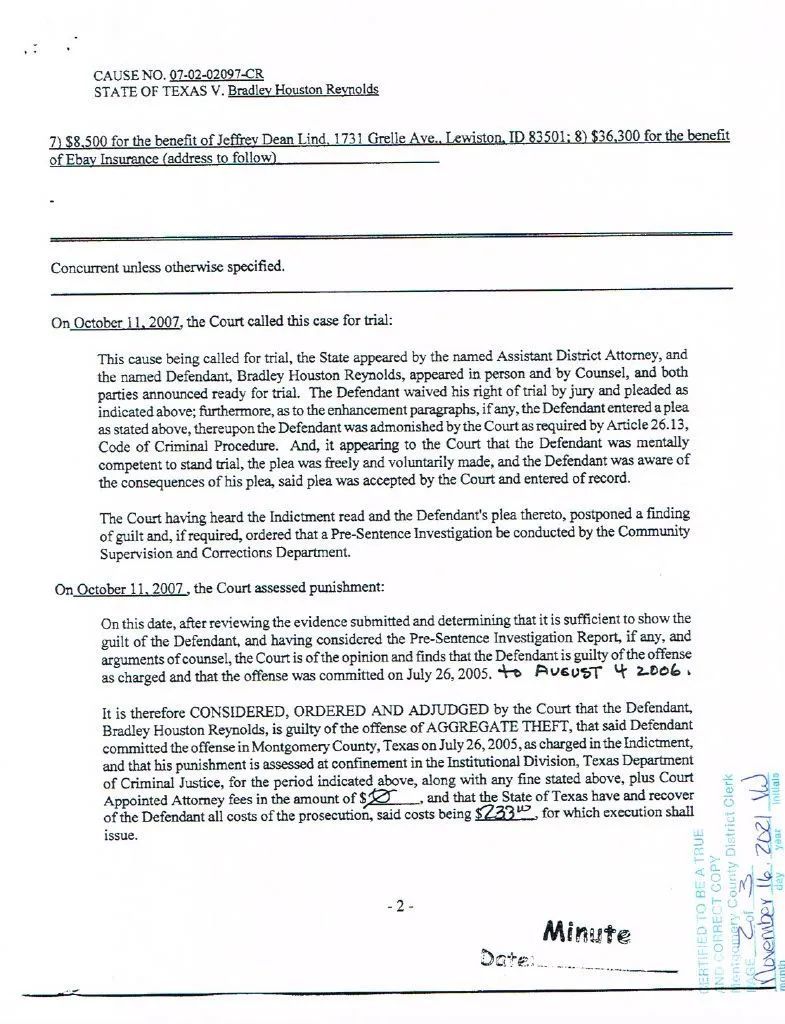 Bradley Houston Reynolds, Brad Reynolds continues his lies and deception.
