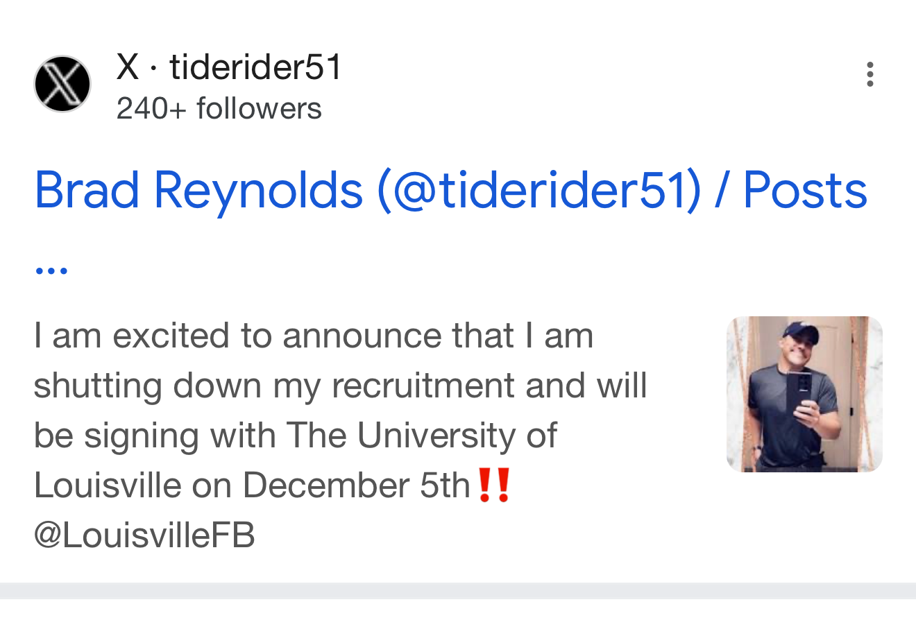 "Brad Reynolds (@tiderider51) / X"